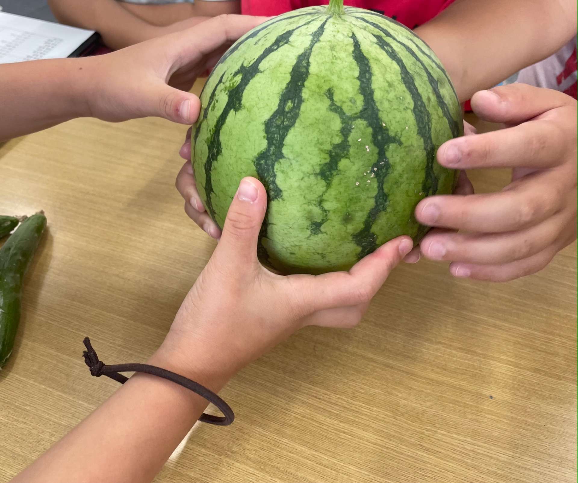 夏のハイライト 野菜編🍅 2022/09/05 終わってみればあっという間だった夏休み🌻 楽しかった出来事をピックアップしてお届けします😆 今年は、昨年以上にたくさんの野菜が収穫できました🌽 初めはとても小さかったスイカ、、、 みんな、自分の子のように大切に育てていました🍉 雨の日や風の日はハラハラドキドキしながら外を見つめていましたね。 大きくなってからは、防鳥ネットで保護! 無事に収穫♫ お店で売っているものよりは小さめですが、、、 無事に収穫できたことにみんな大喜び😂 おいしくいただきました! 顔の2倍ほどの大きさのきゅうり🥒 つるぼけが心配だったカボチャも、2つも収穫できました✨ 次は冬野菜を植えます!楽しみです✨ みんなのね みんなの木 みんなのね&みんなの木