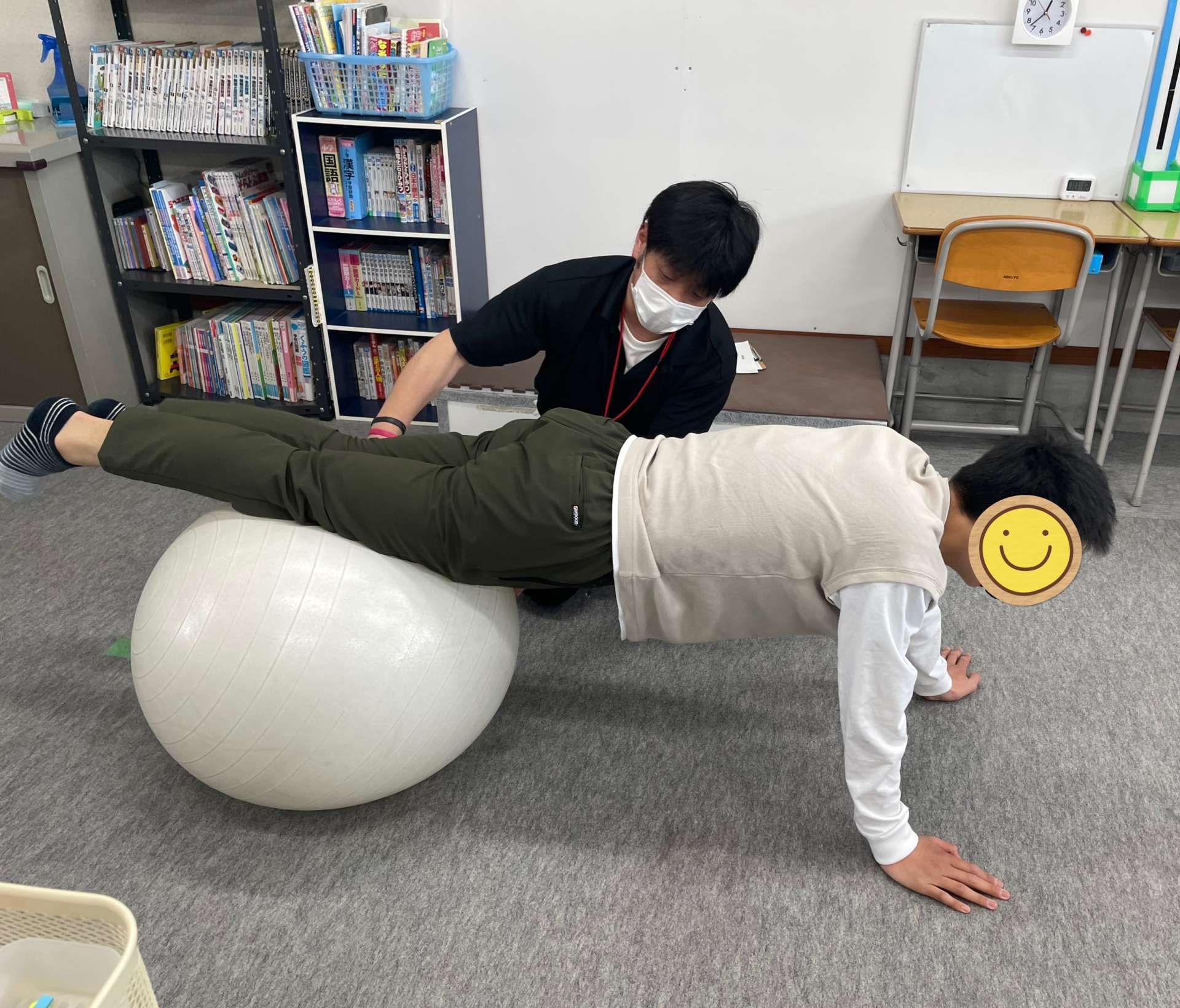 放課後等デイサービスみんなのね、発達支援ルームみんなの木ですみんなの木の月曜日は、毎週基礎運動の日!スポーツにつながる身体の動かし方を一緒にトレーニングしていますよ今日は、バランスボールを…