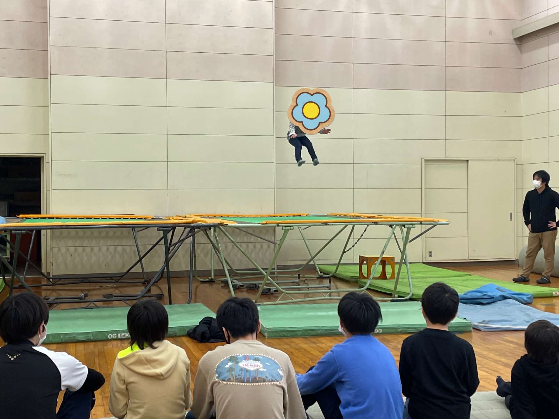 トランポリン コロナに感染された方が市内でも増えてきましたね!体育館も、いつ閉鎖になるかわかりません使わせていただいている間は、、距離などにも最大限気をつけていきたいところです(_)今日のトランポリンは、腰…