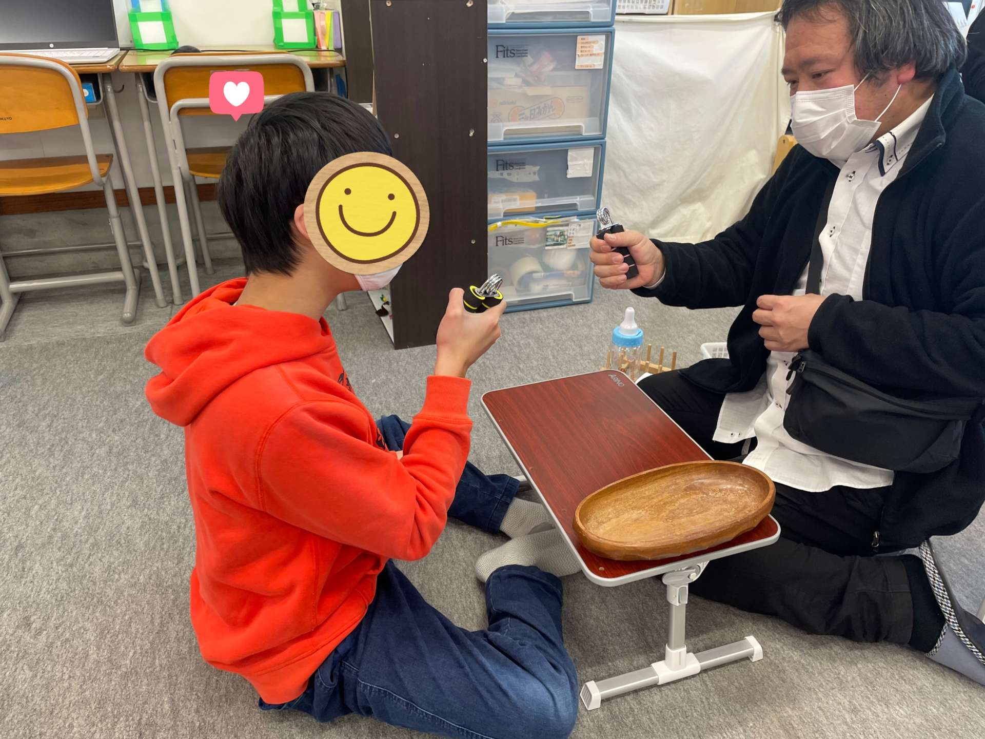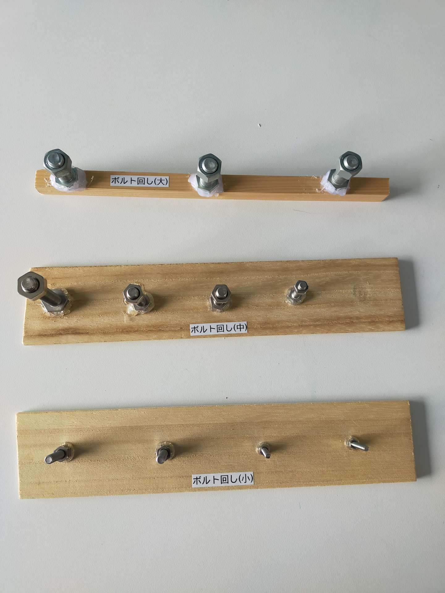 その名もボルト回し こんにちは。放課後等デイサービスみんなのね、発達支援ルームみんなの木です。今日も個別トレーニングの紹介をしたいと思います。その名も「ボルト回し」です。板に複数のボルトを並べてホットボンドで…