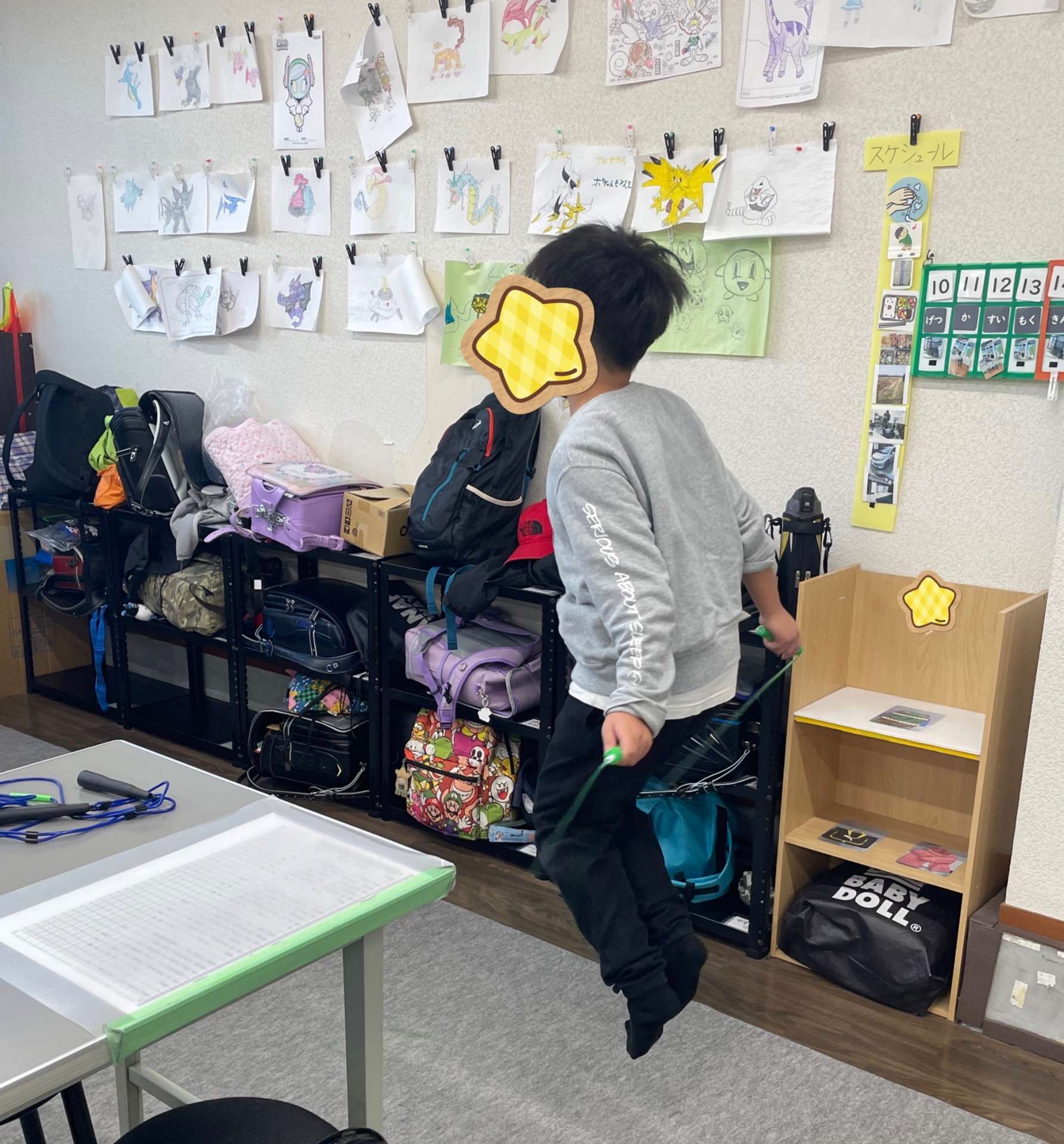 縄跳びで基礎運動 みんなの木では、10月に入ってからの基礎運動は縄跳びをしています!縄を回すタイミングと、ジャンプするタイピングをしっかり合わせることが目標の子。前跳び100回を目標にしている子。目標は様々ですが…